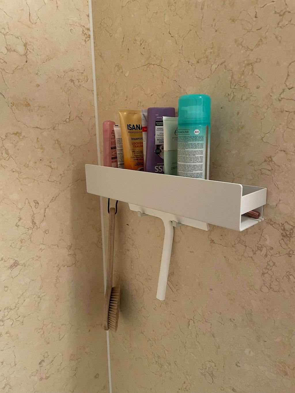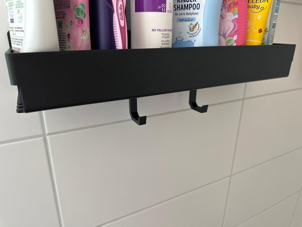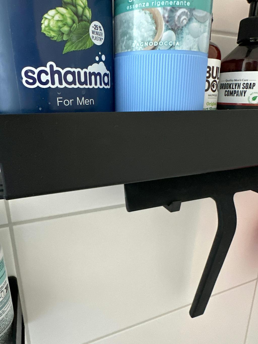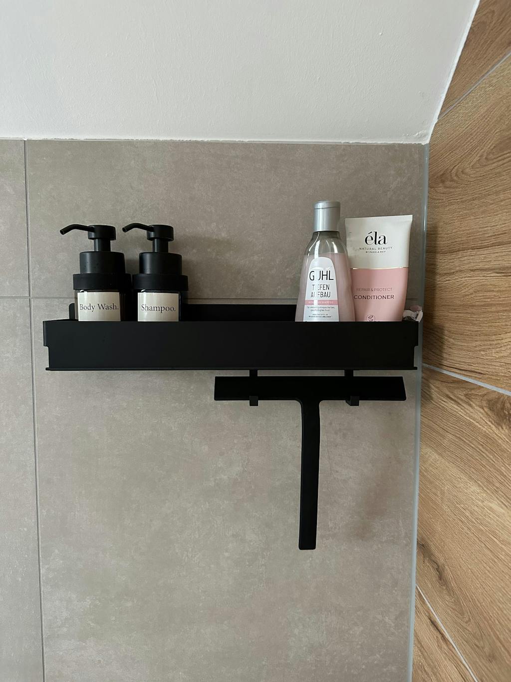 Is the small basket on your bathroom faucet overflowing again and the mess is already taking over your shower floor? It's high time to find a stylish solution with our black shower shelf!