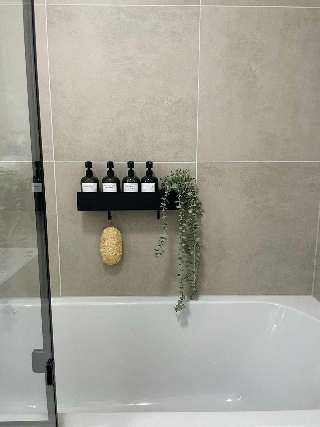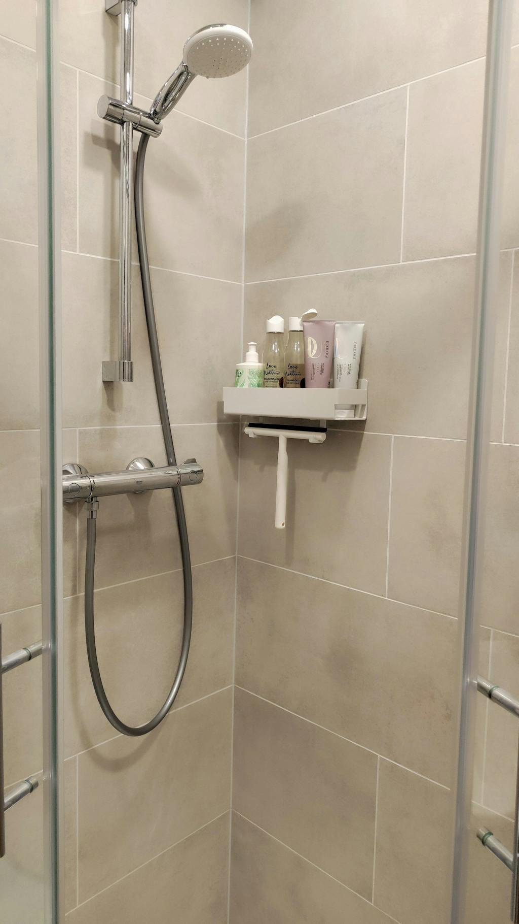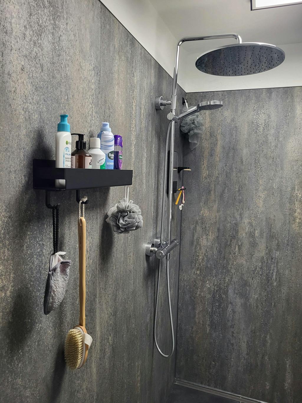 Is the small basket on your bathroom faucet overflowing again and the mess is already taking over your shower floor? It's high time to find a stylish solution with our black shower shelf!