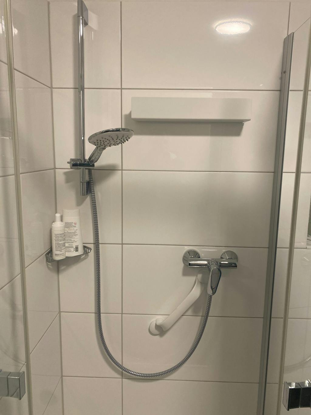 Like most of our products, you can install your new bathroom shelf without drilling , simply using the included adhesive kit – practical, isn't it? This prevents holes in the tiles and is significantly easier than screw installation. Included are three high-quality 3M adhesive strips and liquid mounting adhesive for a particularly secure hold.