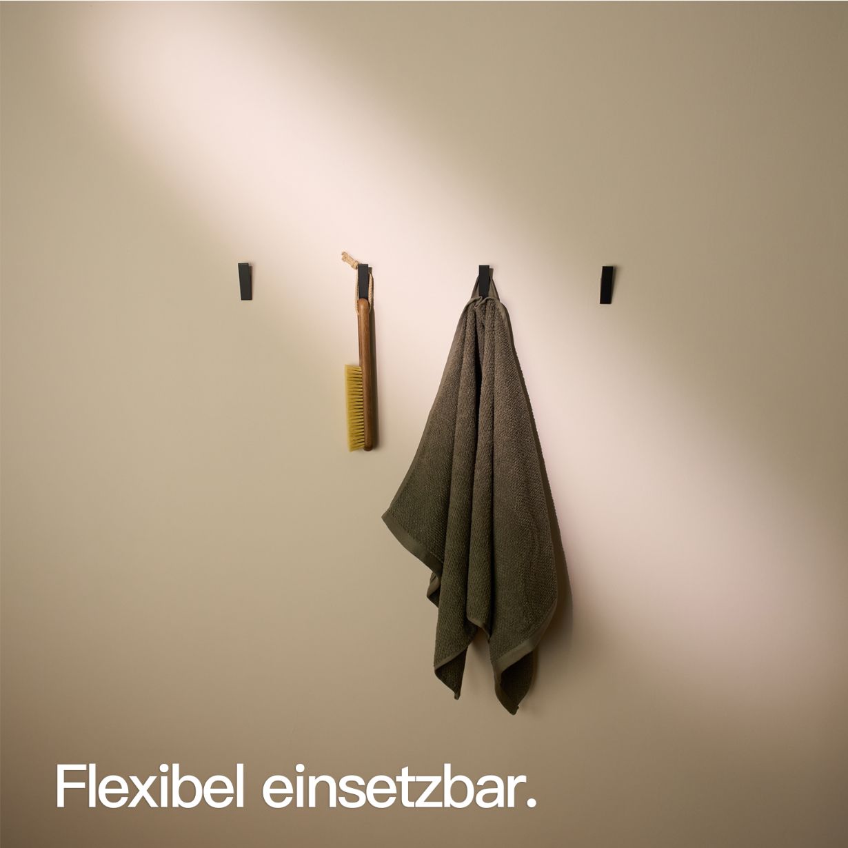 Discover the new adhesive hooks for your bathroom – stylish, robust, and easy to install! Our solid aluminum adhesive hooks not only boast exceptional hold, but also look great. Whether in black, white, or brushed silver, they're the perfect towel hooks for a modern home.