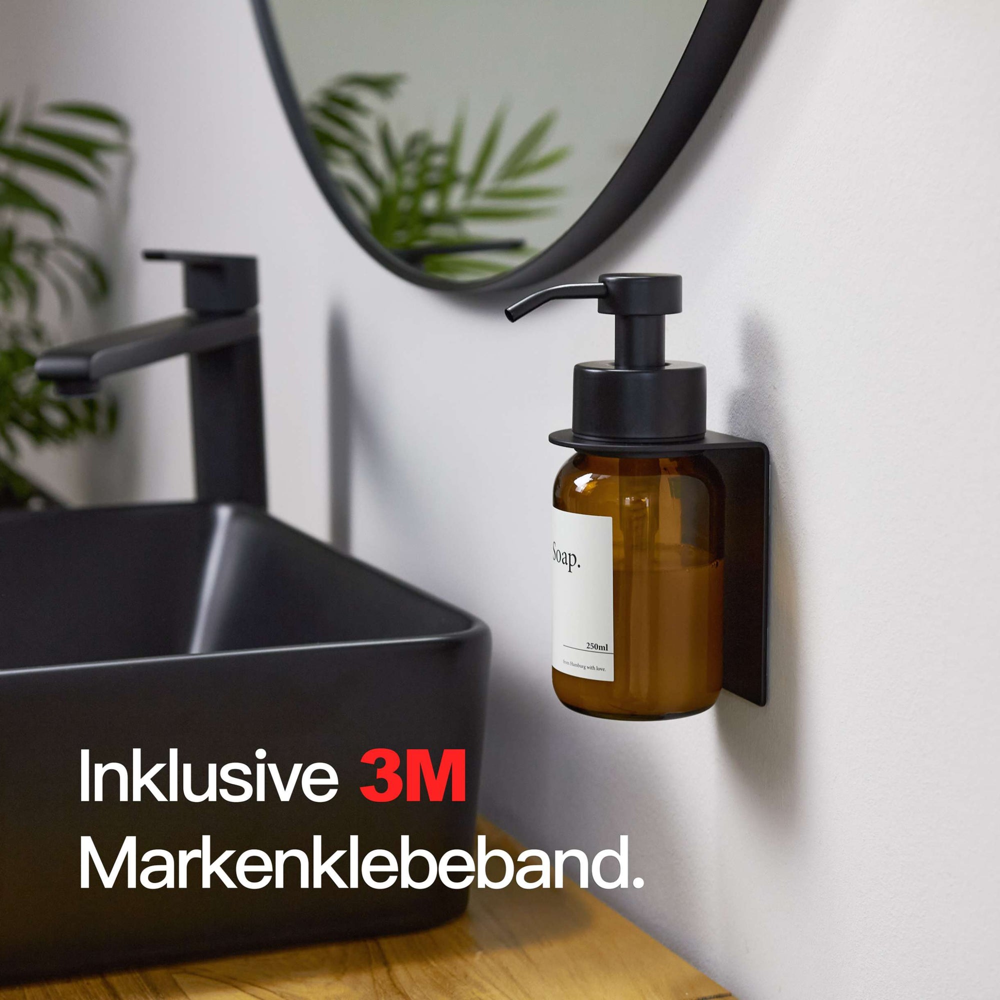 In four easy steps, your Glass soap dispenser wall mounting without drilling black from Designfabrik Hamburg is installed. Find out how! ❯❯