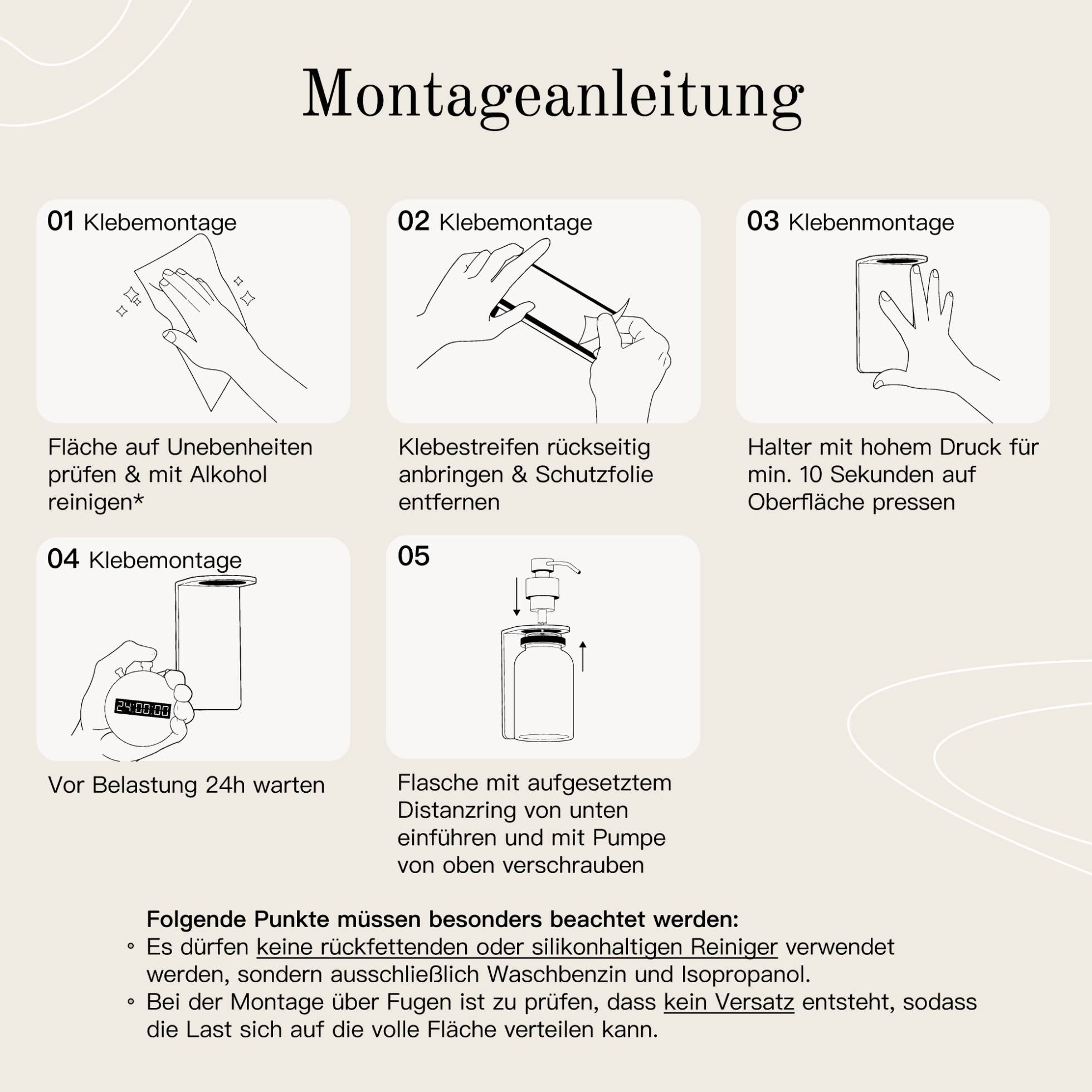 In four easy steps, your Glass soap dispenser wall mounting without drilling white from Designfabrik Hamburg is installed. Find out how! ❯❯