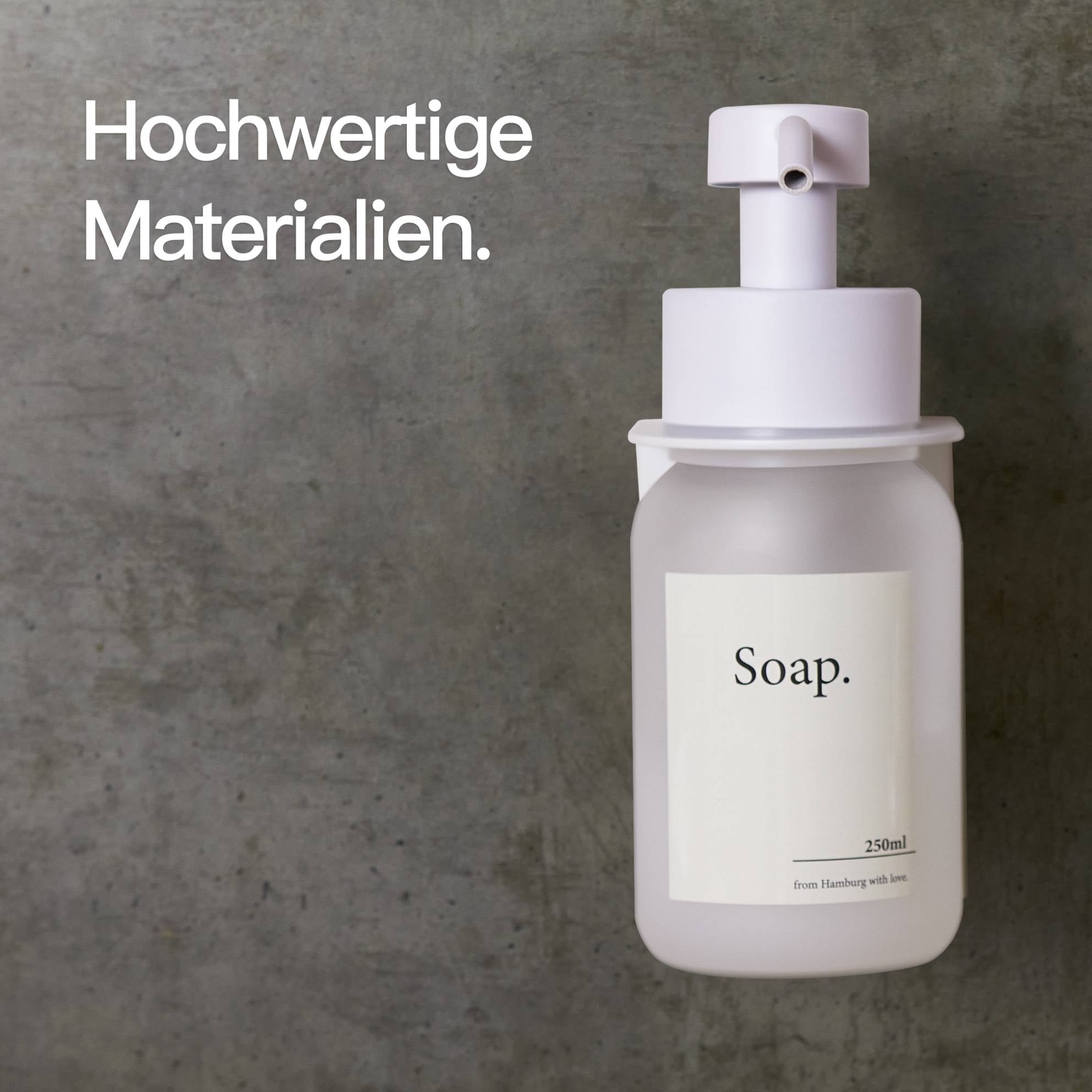 We also stayed true to our principle of keeping everything as simple as possible when it comes to installation. Our white wall mount is easily attached using the included 3M adhesive pad. Then simply screw in the soap dispenser. Done.