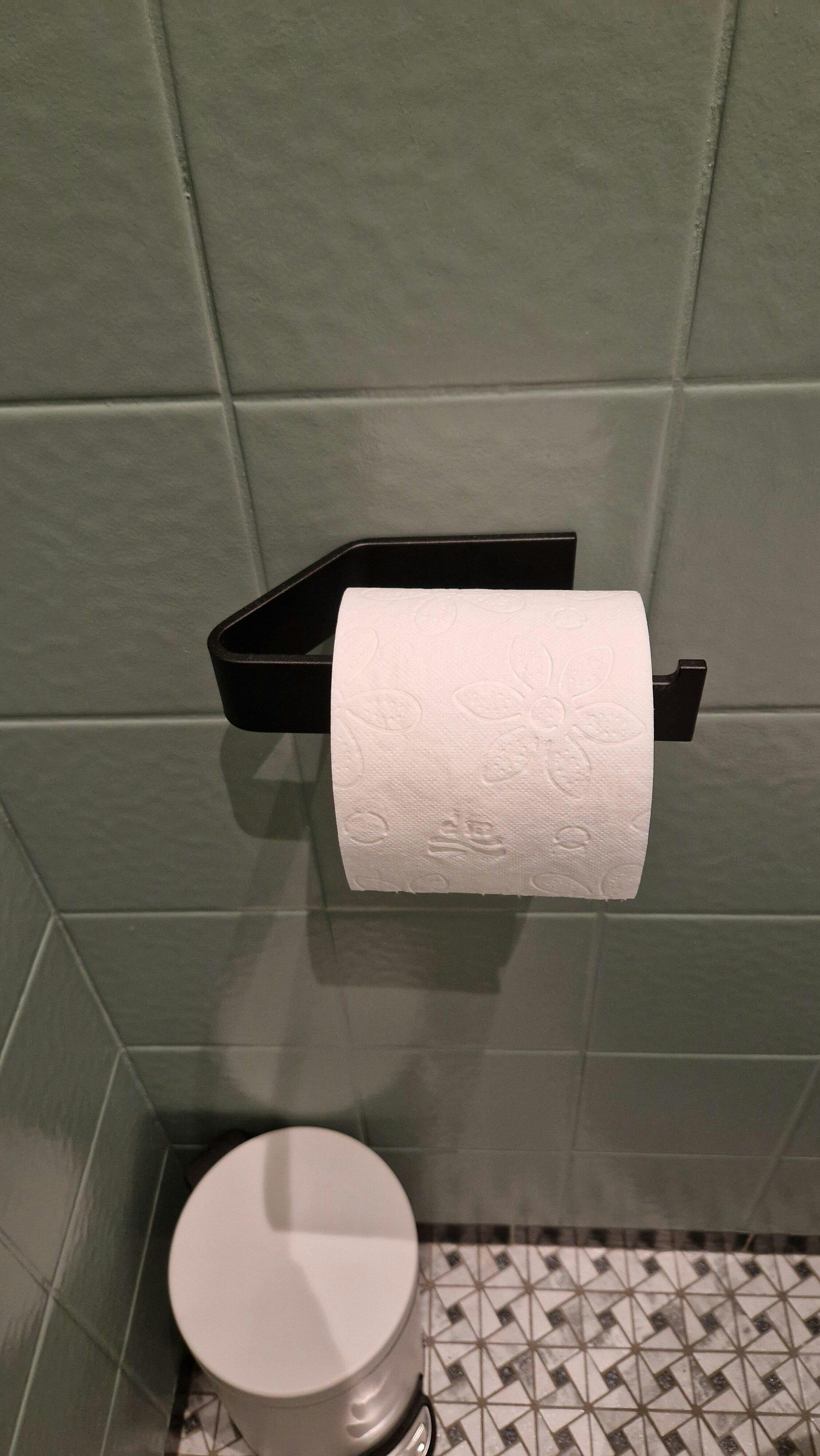 The toilet paper holder is easily mounted using the included 3M adhesive tape on any smooth surface that has been previously cleaned with isopropanol. Press firmly, give it 24 hours, and the toilet paper holder will stay securely in place—we promise.