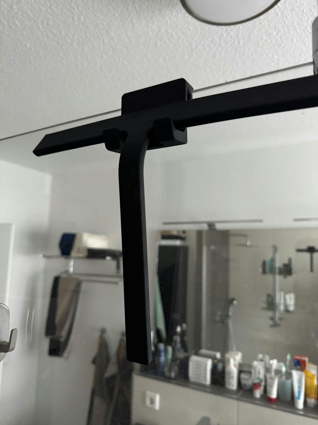Zwei Halterungen sorgen dafür, dass du ihn genau da unterbringen kannst, wo du ihn benötigst: Ob an der Duschwand (dank flexibler Silikonhalterung) oder ganz entspannt mit der selbstklebenden Wandhalterung aus pulverbeschichtetem Aluminium – ohne Bohren, ohne Stress. Und das Beste? Solltest du schon unsere Duschablage nutzen, kannst du den Wischer direkt in die integrierten Haken einhängen. Alles aus einem Guss. Alles aufgeräumt.