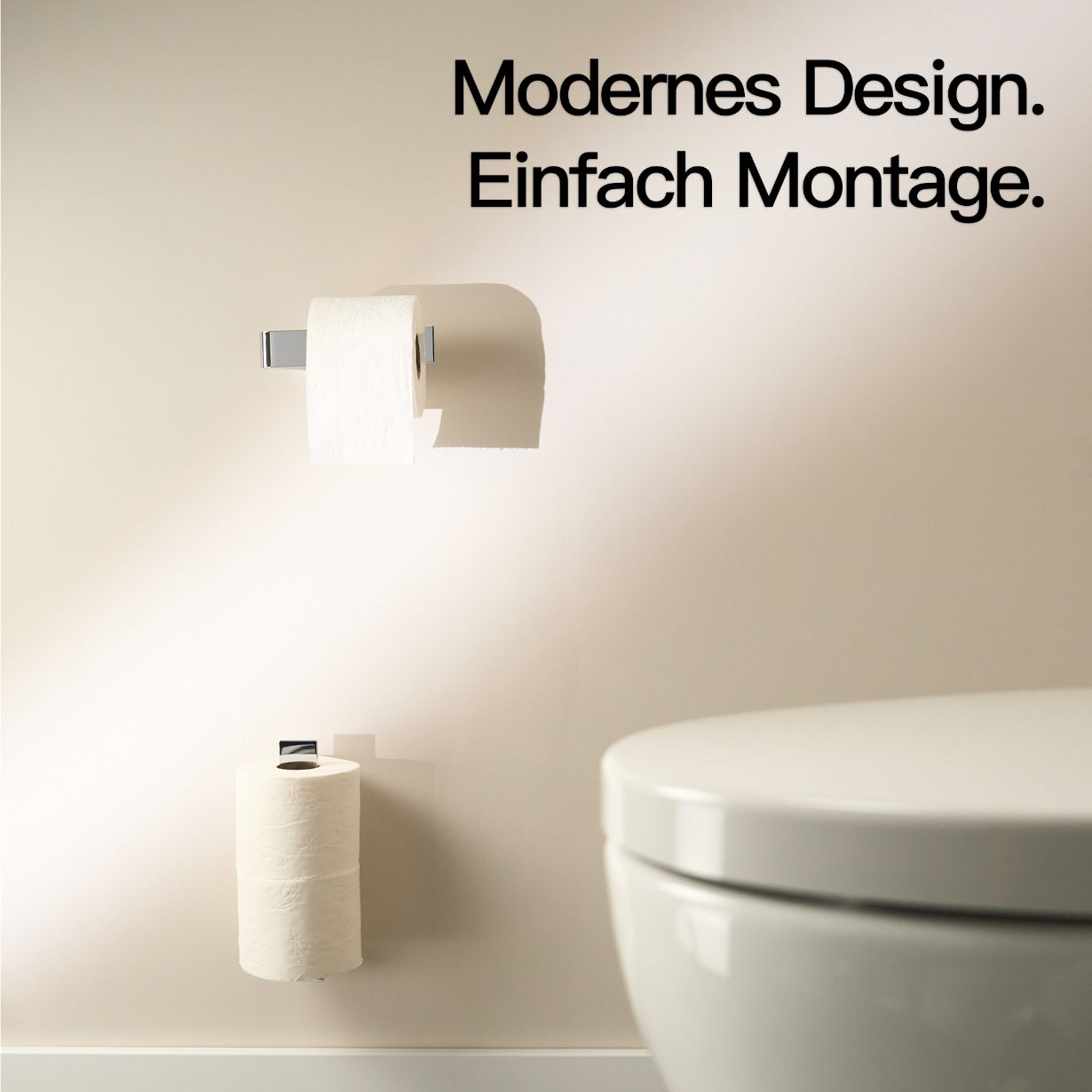 Im Gäste-WC, im Hauptbad oder in der Ferienwohnung – der Halter bietet Platz für zwei Rollen und sorgt für mehr Ordnung im Alltag. Die Montage gelingt per starkem Klebepad – ohne Werkzeug, ohne Spuren.