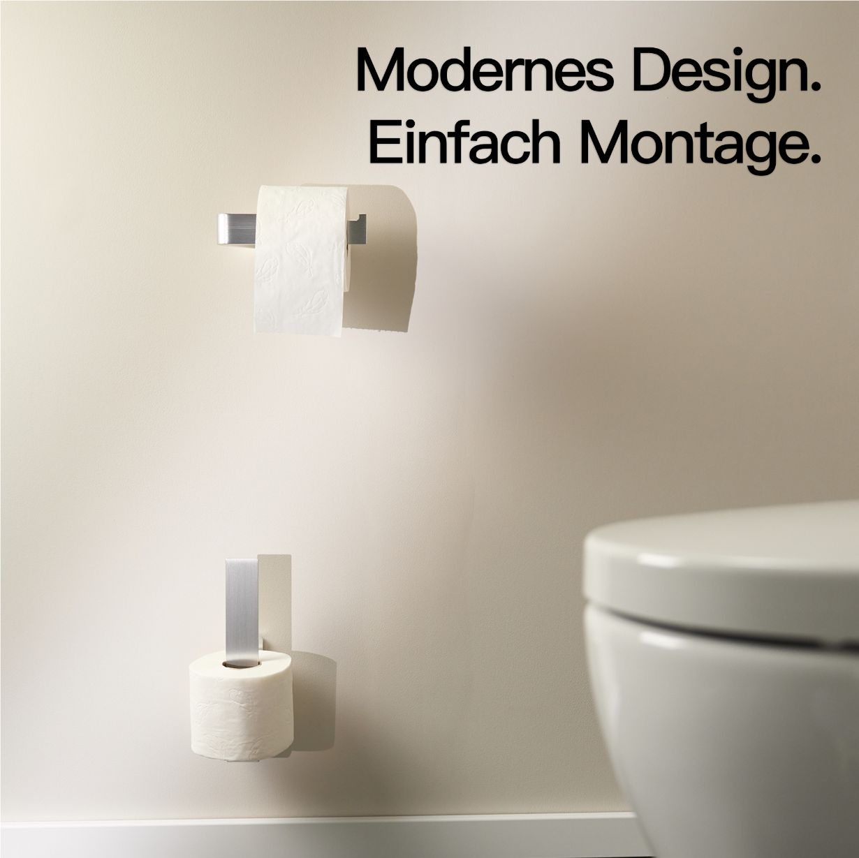 Dürfen wir vorstellen: Unser Ersatzrollenhalter für zwei Toilettenpapierrollen – jetzt in gebürstetem Silber erhältlich. Dezent, strukturiert, hochwertig – und selbstverständlich ohne Bohren montierbar.