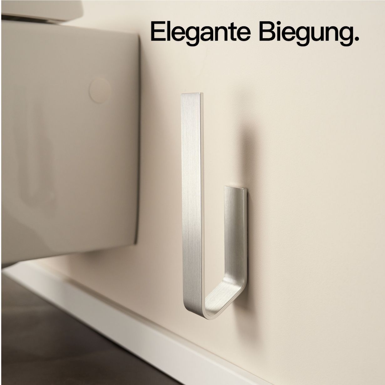 Die Oberfläche in gebürstetem Silber ergänzt viele Materialien wie Holz, Beton oder Naturstein. Besonders gut passt dieser Look zu unseren gleichfarbigen Handtuch- und Toilettenpapierhaltern.