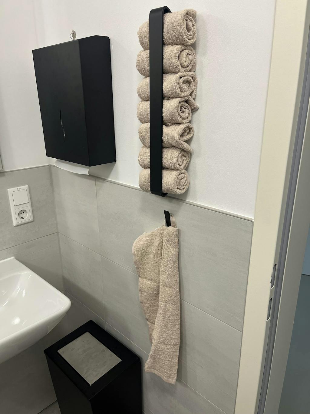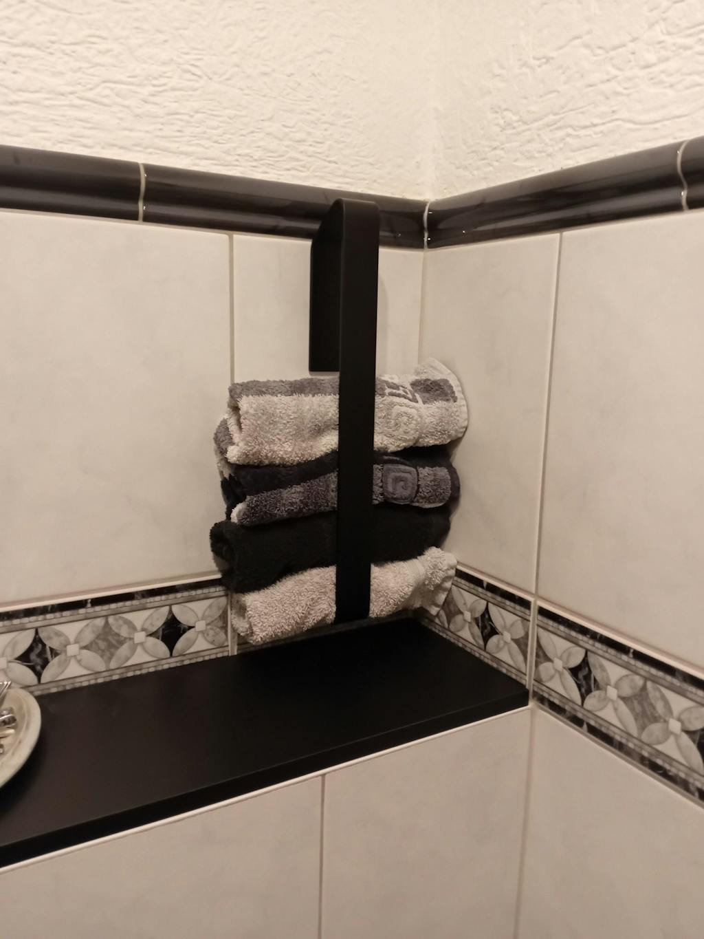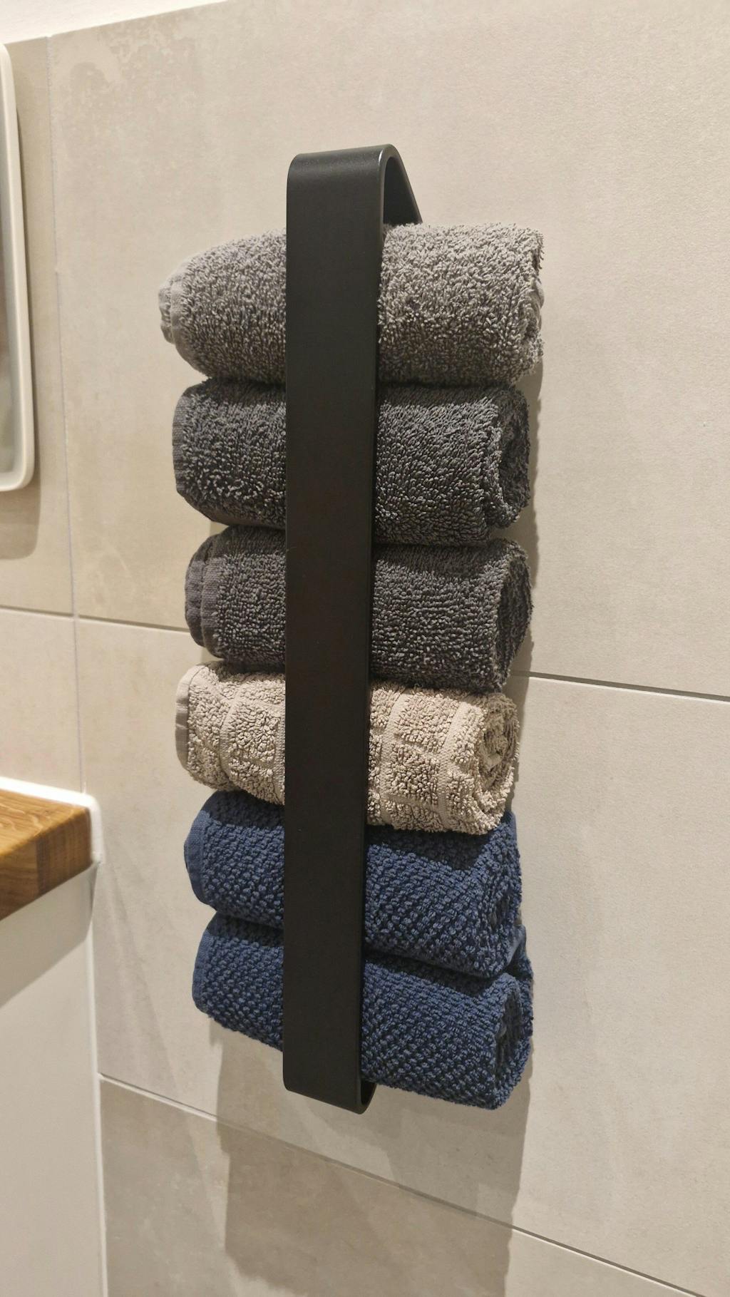 Sie wurde speziell zur Aufbewahrung aufgerollter Handtücher entwickelt – stilvoll, platzsparend und ganz ohne Bohren montierbar.