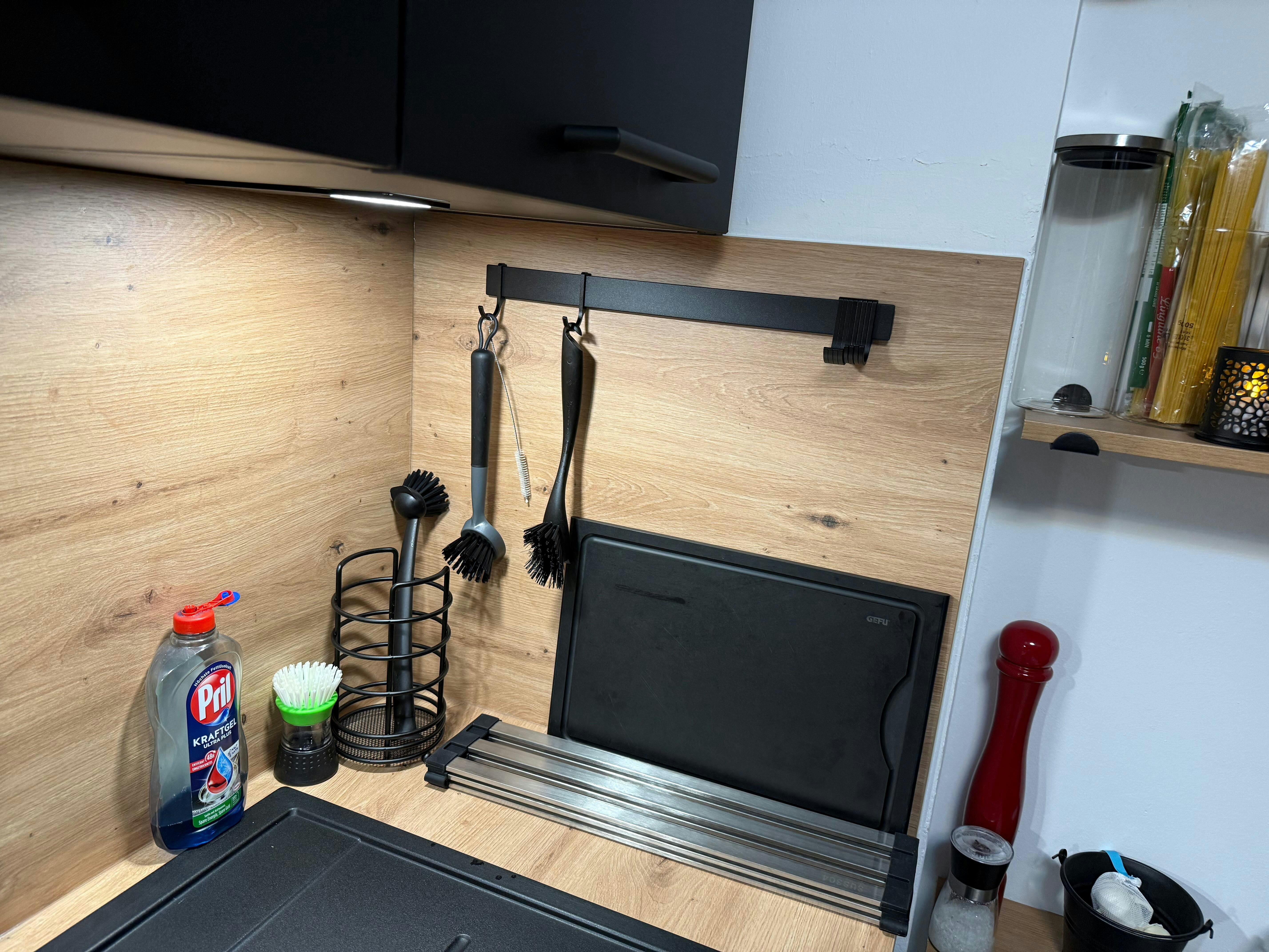 Unsere Hängeleiste macht nicht nur in der Küche eine gute Figur! Bringe die Hakenleiste in deinem Badezimmer, an Türen oder anderen glatten Oberflächen an. Und wenn du nach noch mehr Stil strebst, füge einfach weitere Leisten hinzu, um ein harmonisches Gesamtbild zu schaffen.