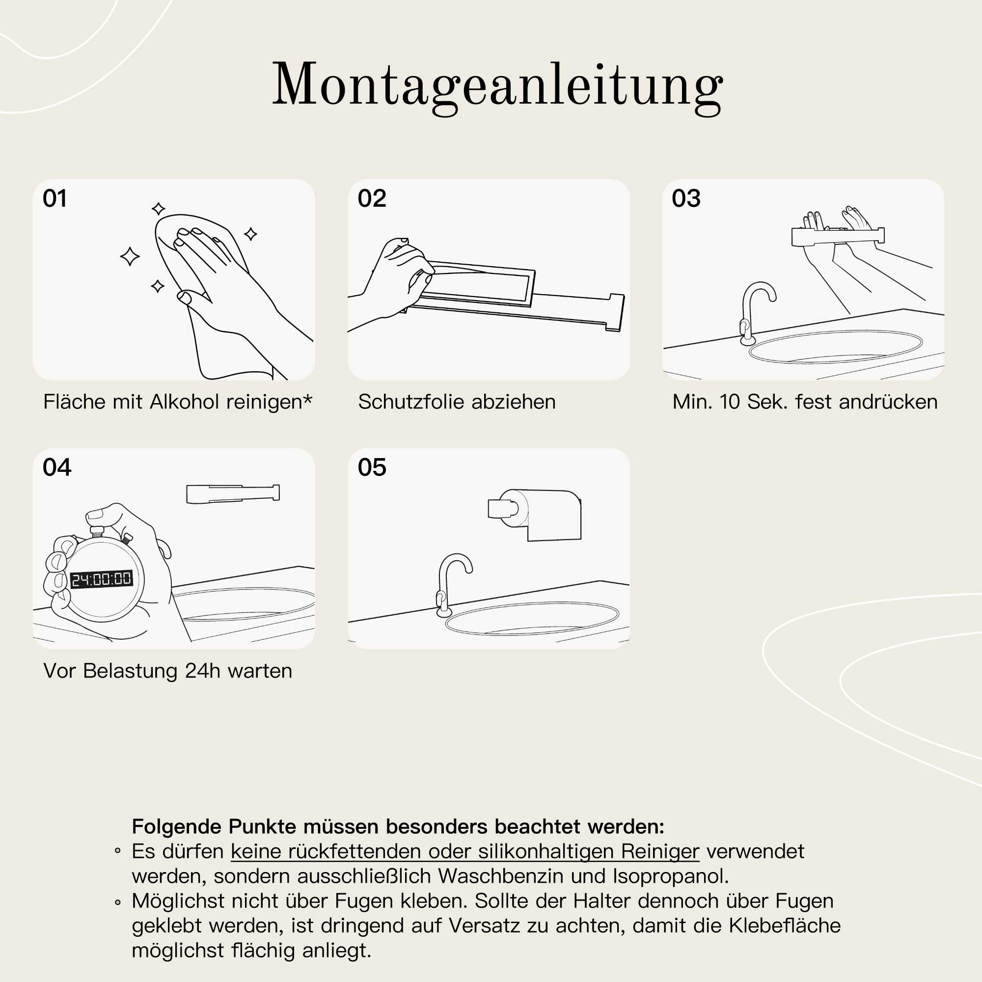 In vier einfachen Schritten ist dein Küchenrollenhalter ohne Bohren Silber von Designfabrik Hamburg installiert. Hier erfährst du wie! ❯❯