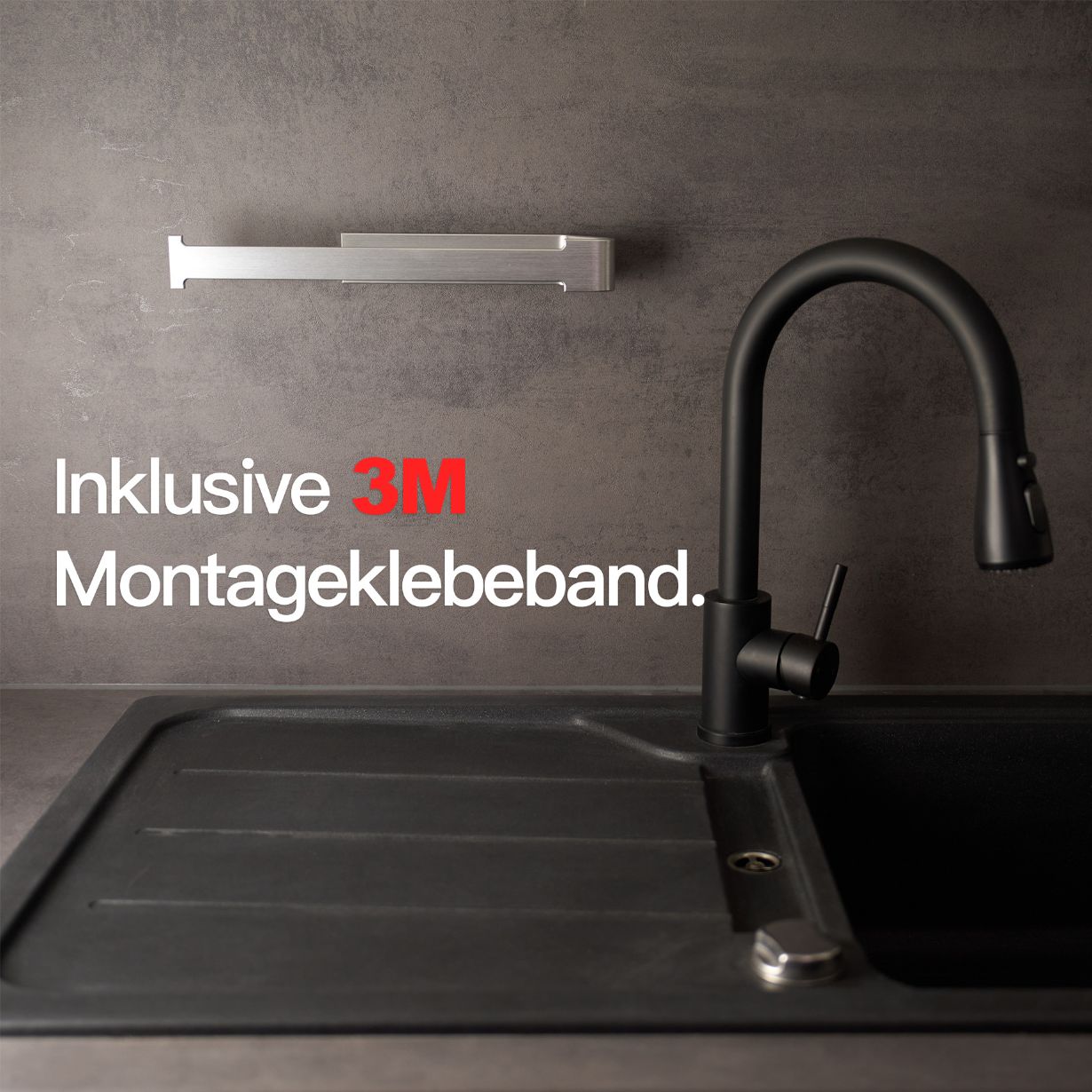 Setze ein Statement mit unserem Küchenrollenhalter in gebürstetem Silber - dein exklusives Küchenzubehör, welches minimalistisches Design mit höchster Funktionalität verbindet. Die einfache Montage mit dem starken 3M-Klebeband macht Bohren überflüssig – und deine Wände bleiben intakt!