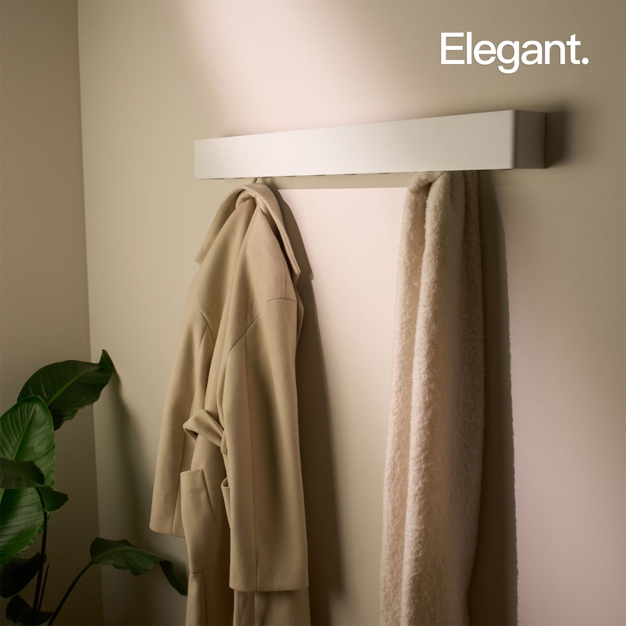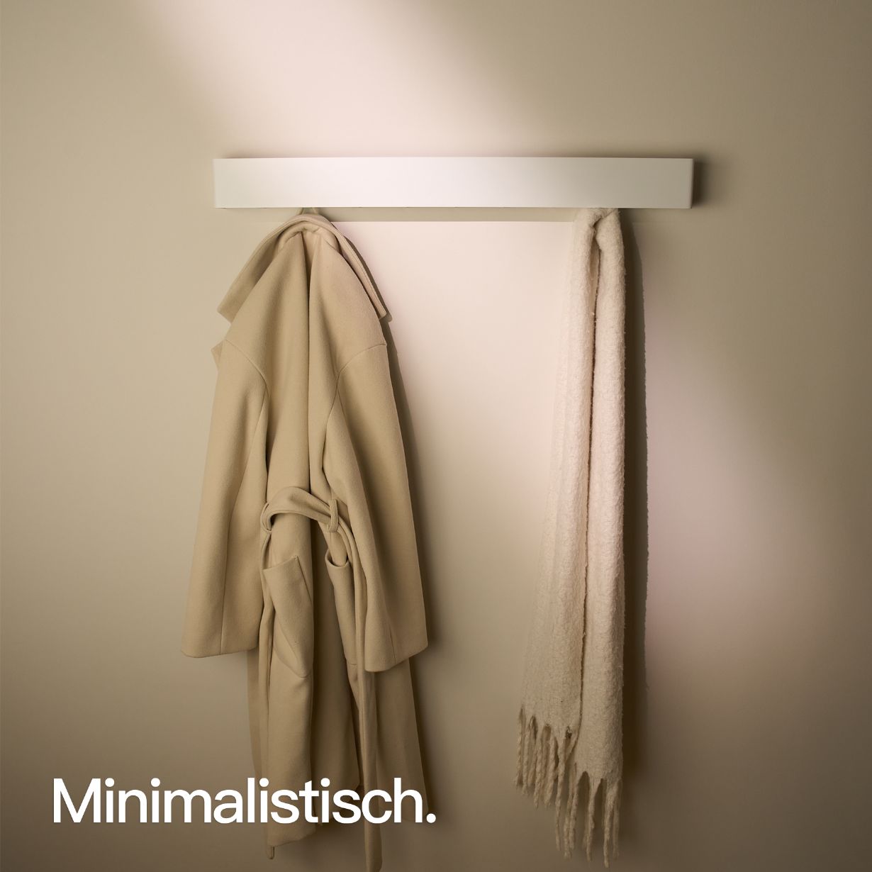 Die Anbringung deiner neuen Garderobenleiste ist kinderleicht. Mit nur zwei beiliegenden Schrauben befestigst du sie mühelos an der Wand – sei es im Flur, Schlafzimmer oder in der Ankleide. Die Schrauben werden durch das clevere Design verdeckt, sodass die Befestigung unsichtbar bleibt und die Leiste eine nahtlos elegante Optik bewahrt.