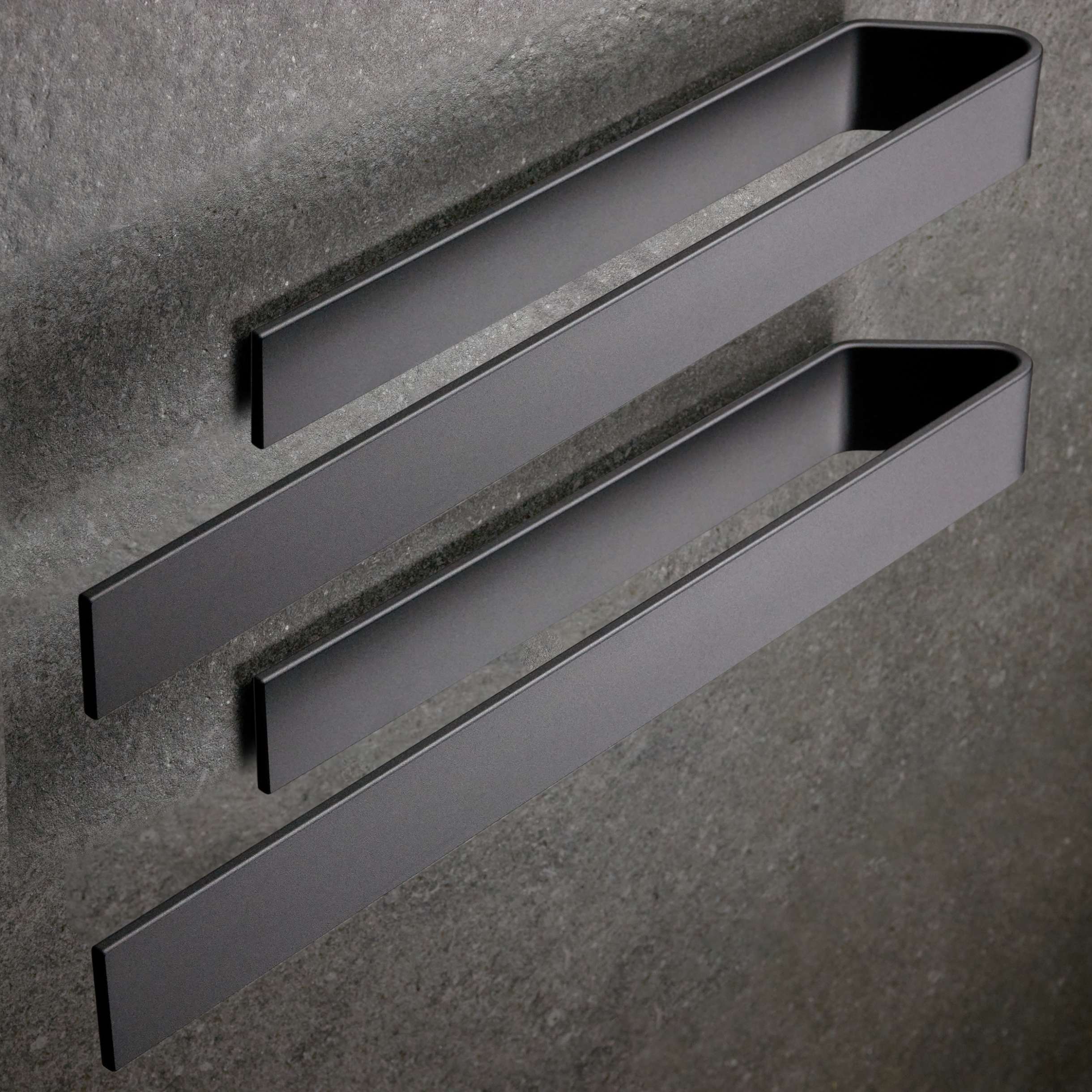 Gefertigt aus 3 mm starkem, rostfreiem Aluminium, hält das Regal locker Pflegeprodukte, Gewürze, Schlüssel & Co. Die CNC-gefrästen Kanten sorgen dabei für eine besonders saubere, hochwertige Optik – kein Grat, kein Schnickschnack, einfach sauber verarbeitet.