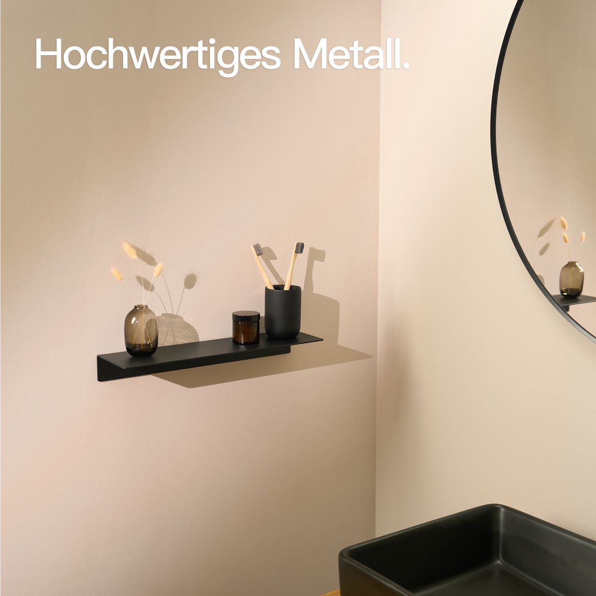 Ob im Bad oder in der Küche: Mit seinem cleanen Look in Schwarz, Weiß oder gebürstetem Silbergrau fügt sich das Regal nahtlos in moderne Räume ein – dezent, edel und trotzdem ein echter Hingucker.