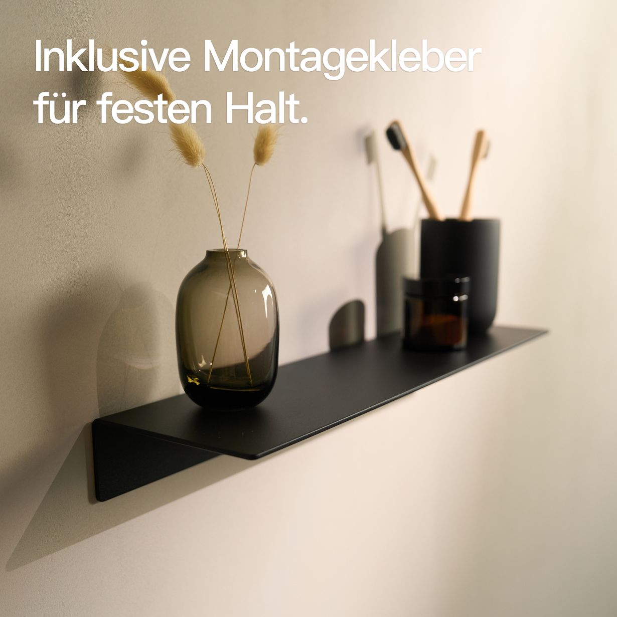 In vier einfachen Schritten ist dein Wandregal ohne Bohren Schwarz von Designfabrik Hamburg installiert. Hier erfährst du wie! ❯❯
